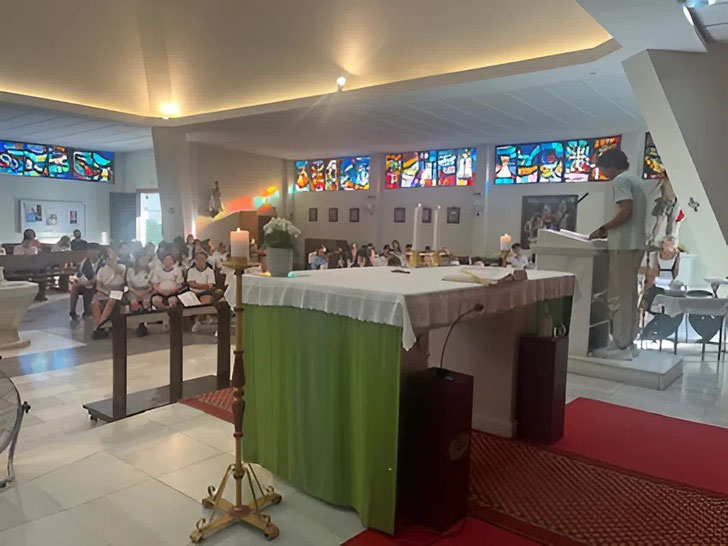 Al finalizar la eucaristía la jefe de estudios, en nombre del Claustro de profesores/as y alumnos agradeció a los presentes su participación activa y a la parroquia por su acogida. Mencionó la presencia de dos profesoras alemanas y pidió para ellas un aplauso.