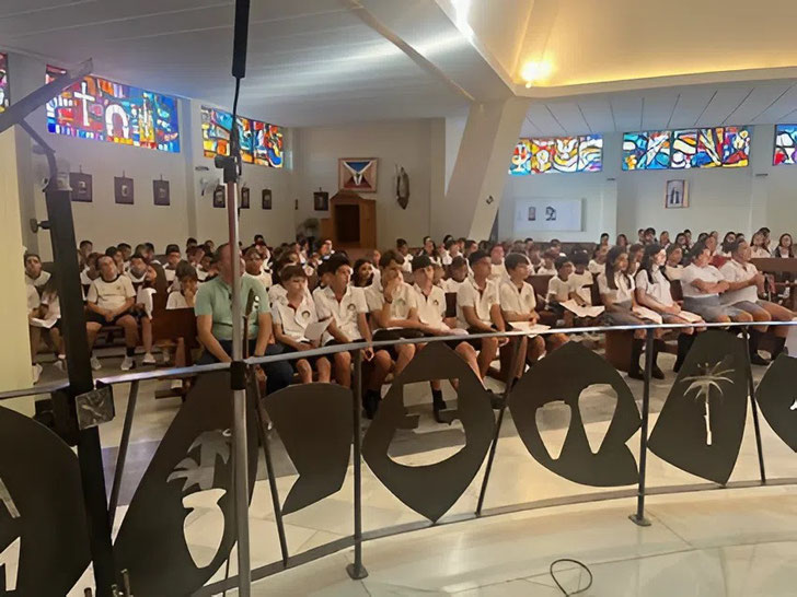 En la mañana del martes, día 8 de octubre, fiesta de Nuestra Señora del Rosario, los alumnos se desplazaron a la parroquia de Nuestra Señora de Montserrat, como es habitual desde la fundación de la parroquia, para iniciar el curso escolar.