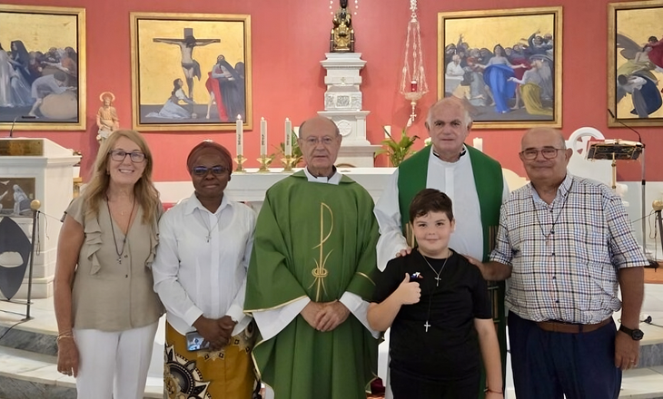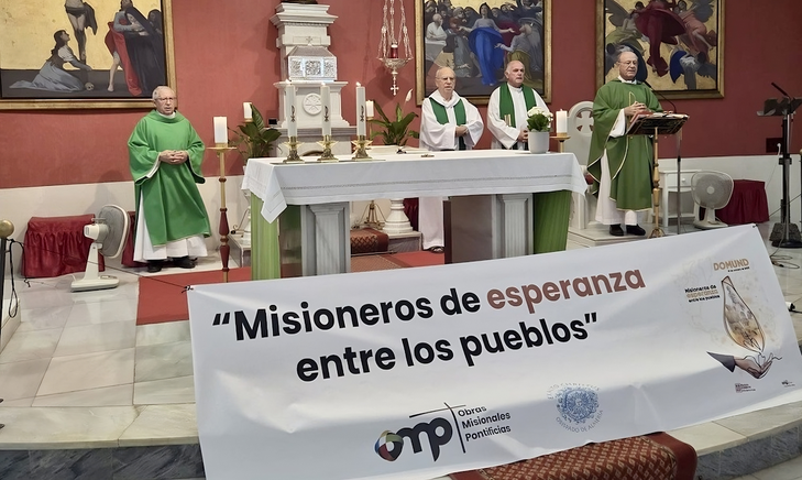 La Santa Misa presidida por el párroco, Manuel Pozo Oller y concelebrada por Francisco Ortega, misionero del Instituto español de misiones extranjeras y Ginés García Sánchez, colaborador de la delegación y promotor en nuestra diócesis del movimiento misionero familiar de Silos, contó con la presencia en el alta .del diácono permanente, Joaquín Espino Parra, Al finalizar la celebración, Verónica, religiosa de la congregación de Cristo Jesús, con casa religiosa en la parroquia de santo Domingo de El Ejido, misionera originaria de la República del Congo, dirigió a los asistentes unas palabras en las que comentó su vocación misionera y animó a los presentes a tener presente a las iglesias que no conocen a Dios.
