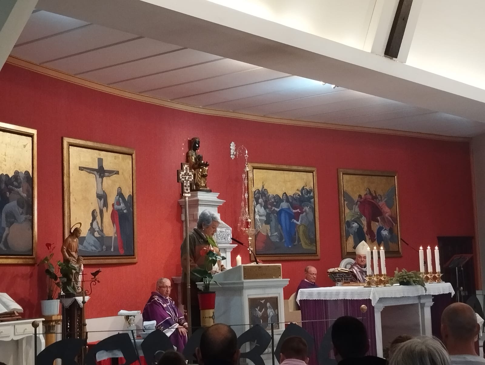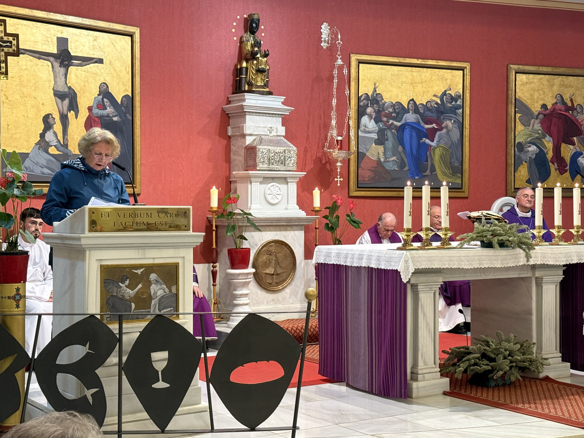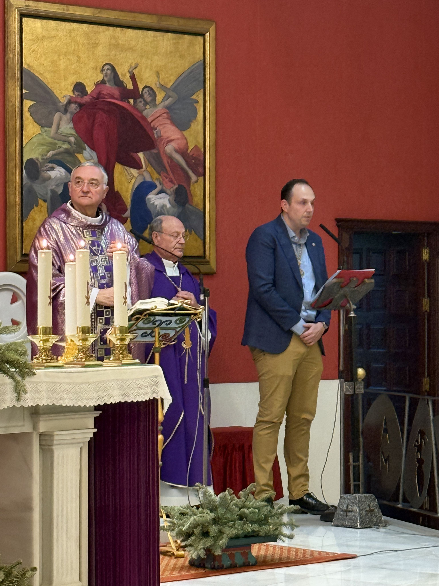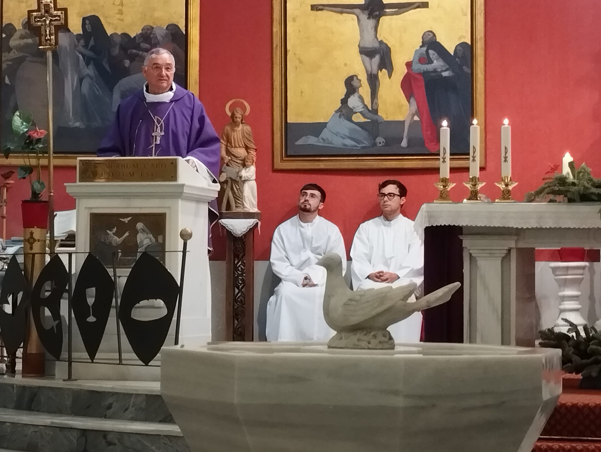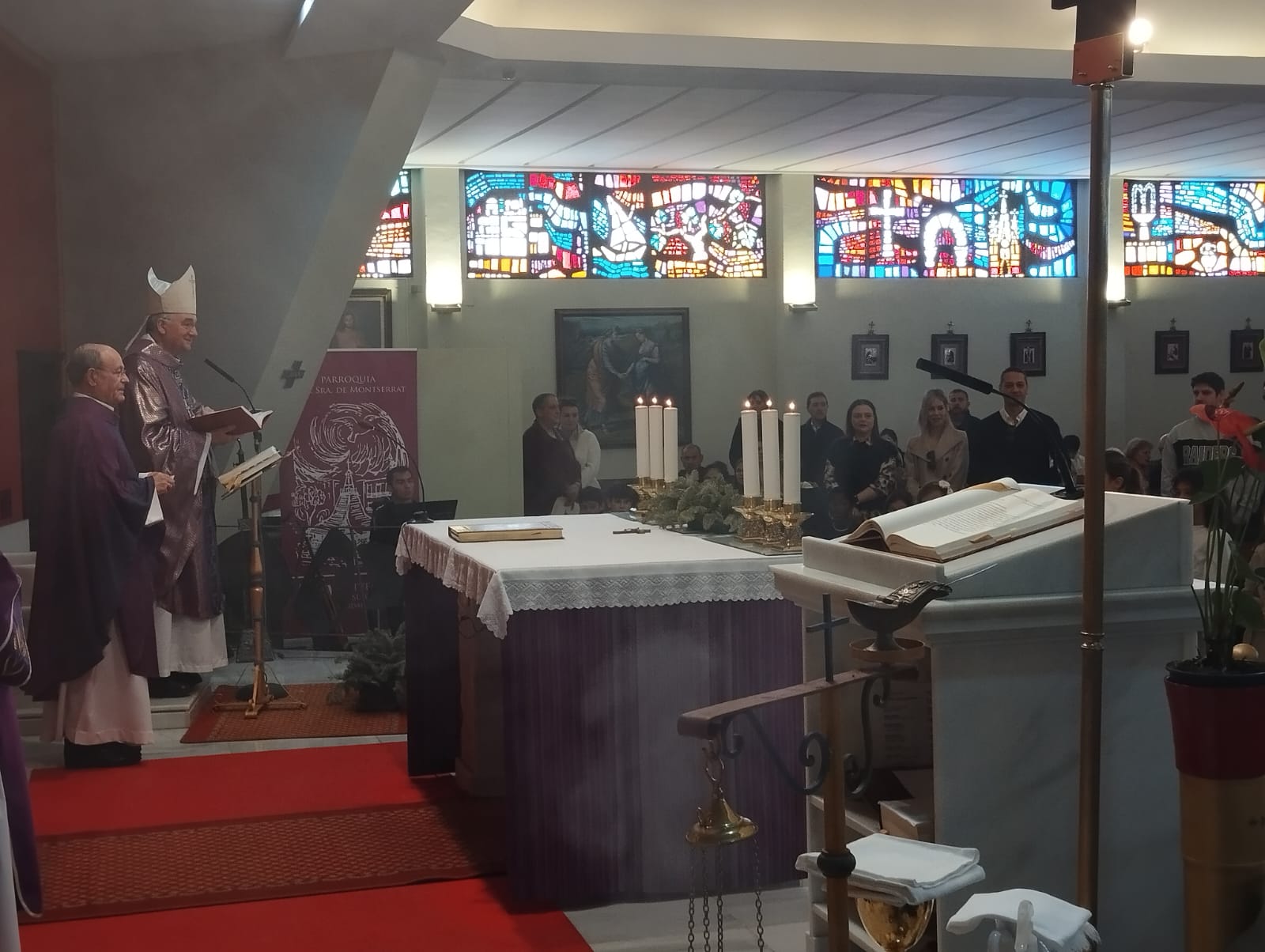 En el ofertorio, además del pan y el vino, se ofreció un artístico cirio junto con dos tórtolas elaboradas en cerámica.