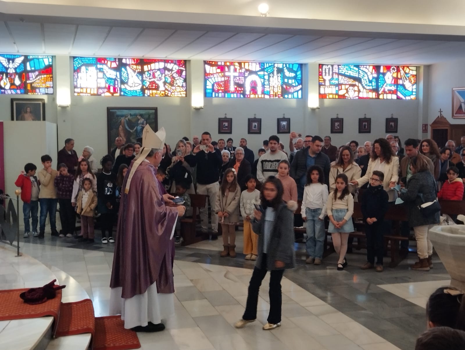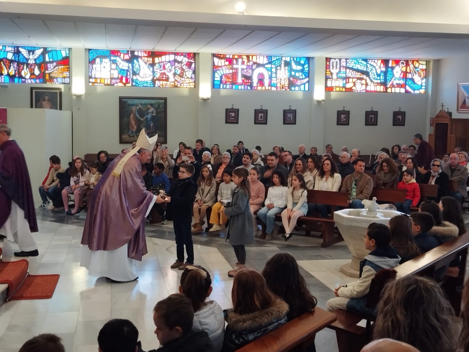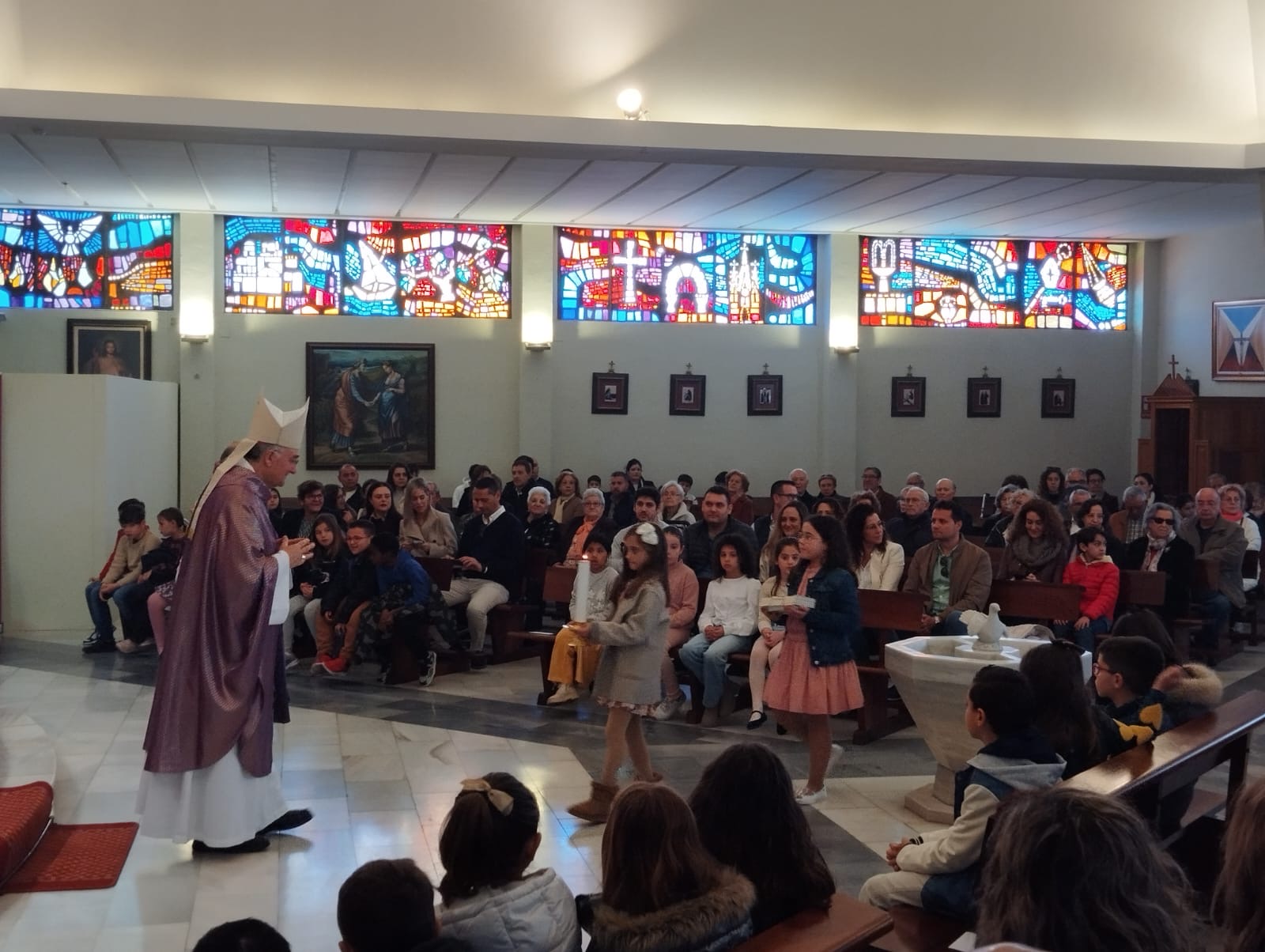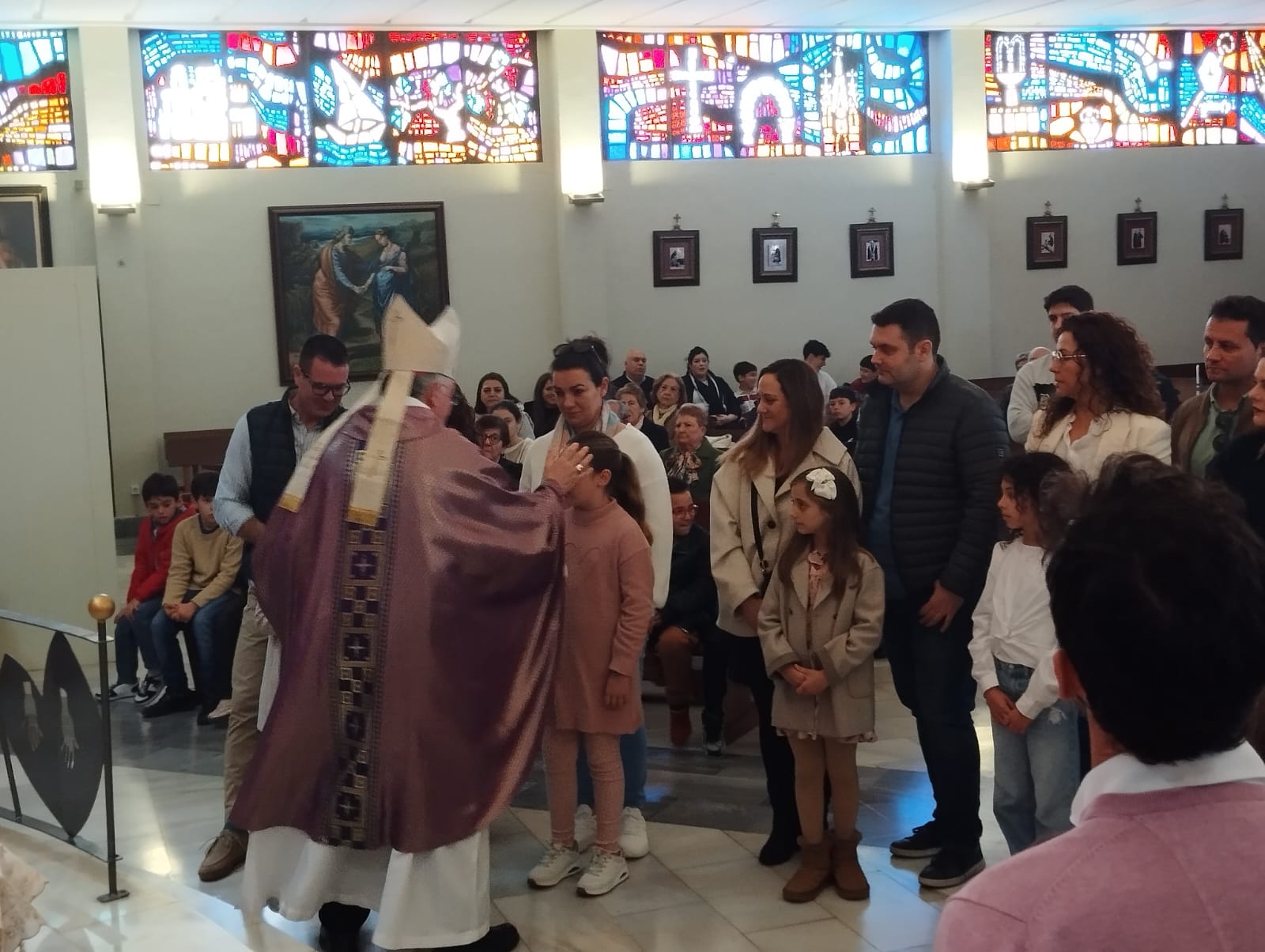 El tercer día de la Visita Pastoral, domingo 8 de marzo, giró en torno a la celebración de la misa estacional de clausura en la que doce niños en edad catequética fueron admitidos en la Iglesia para recibir su bautismo en la Pascua. El templo parroquial se quedó sin aforo y la liturgia resultó espléndida junto a la alegría que aportan en las celebraciones la presencia de las familias y los niños. Al finalizar la santa Misa la comunidad rezó la oración por los frutos de la Visita Pastoral.