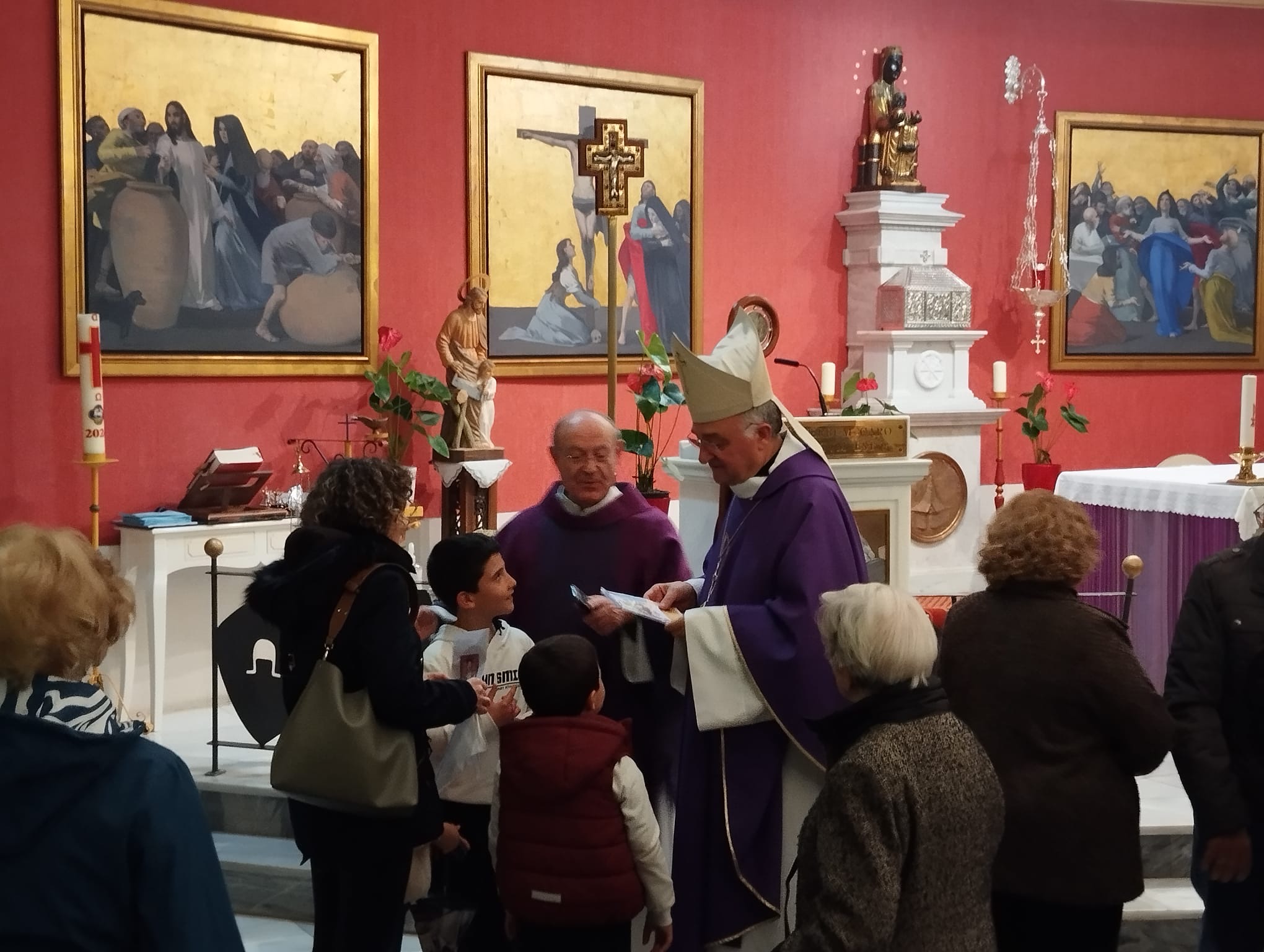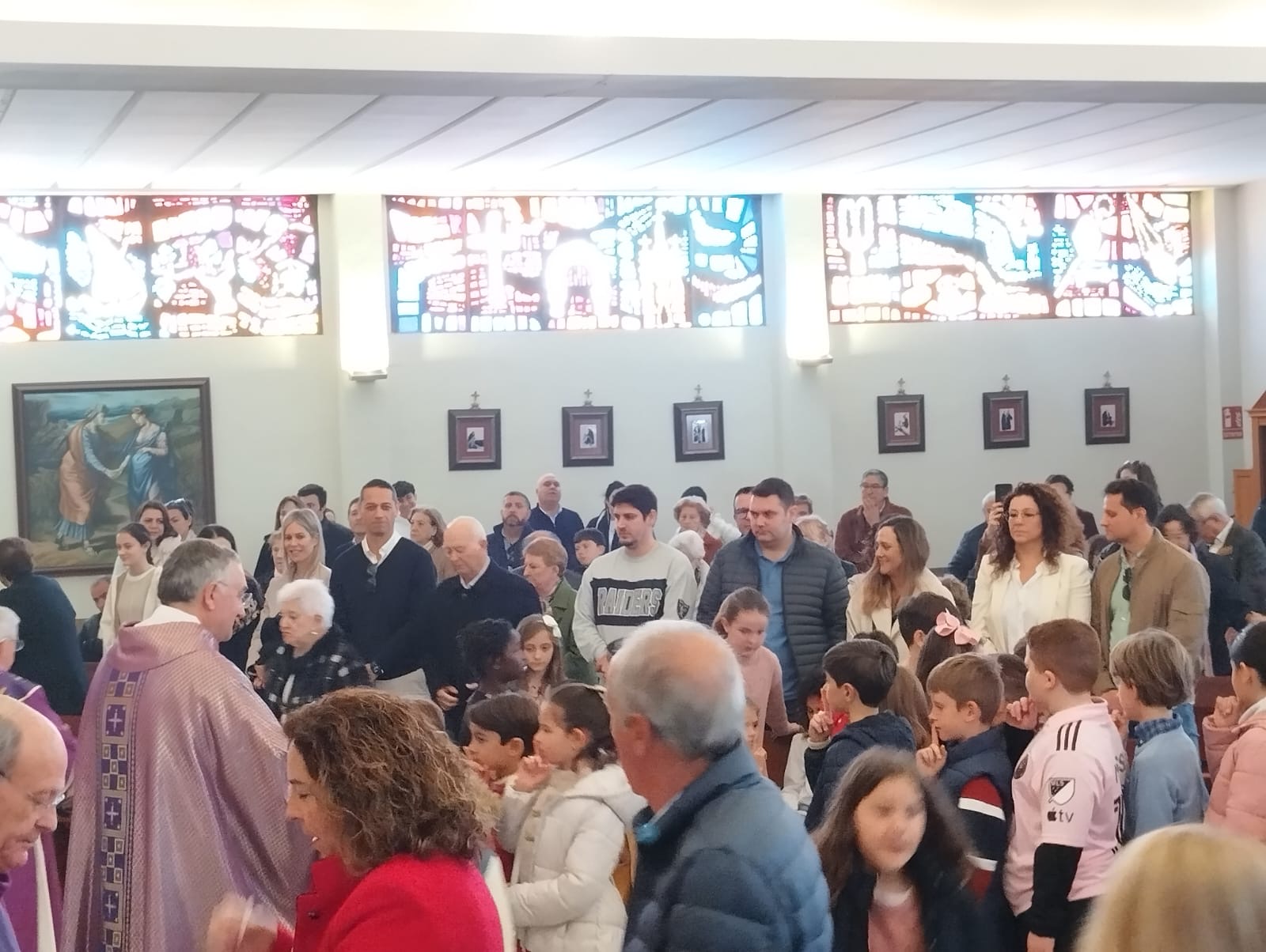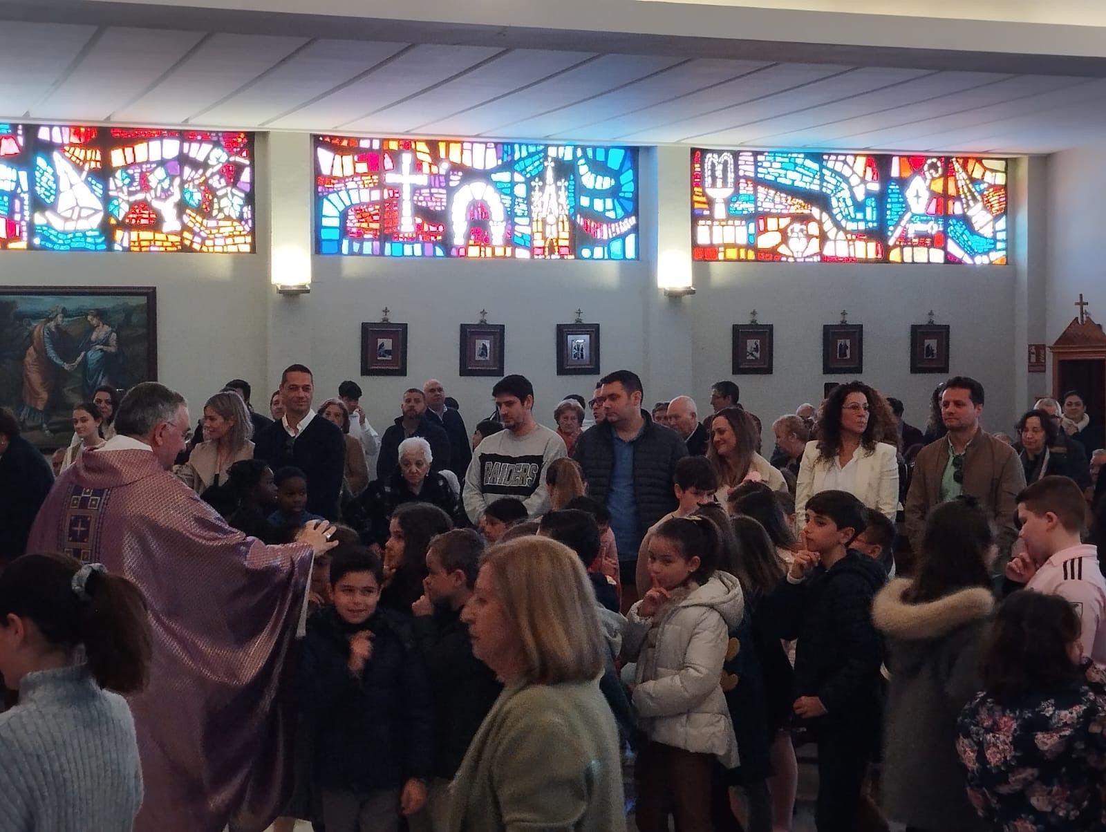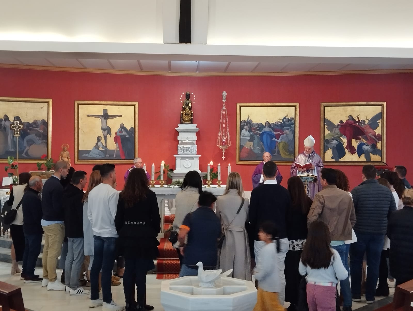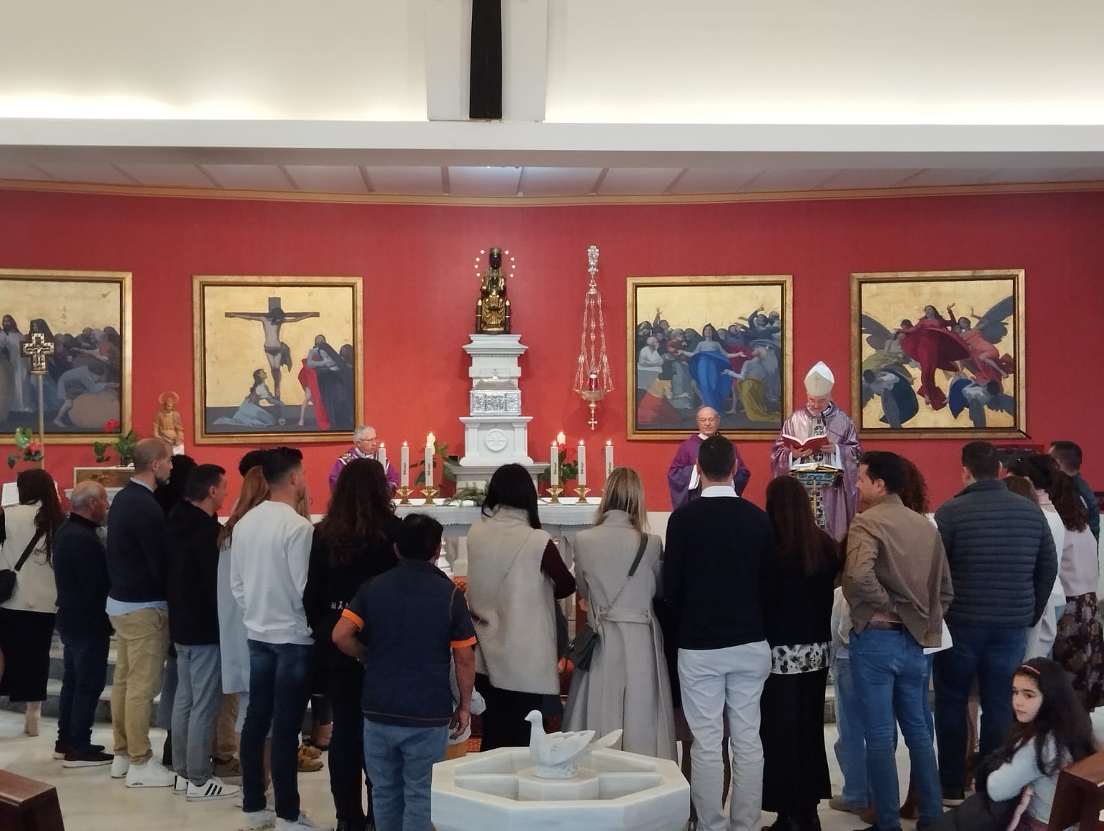El tercer día de la Visita Pastoral, domingo 8 de marzo, giró en torno a la celebración de la misa estacional de clausura en la que doce niños en edad catequética fueron admitidos en la Iglesia para recibir su bautismo en la Pascua. El templo parroquial se quedó sin aforo y la liturgia resultó espléndida junto a la alegría que aportan en las celebraciones la presencia de las familias y los niños. Al finalizar la santa Misa la comunidad rezó la oración por los frutos de la Visita Pastoral.