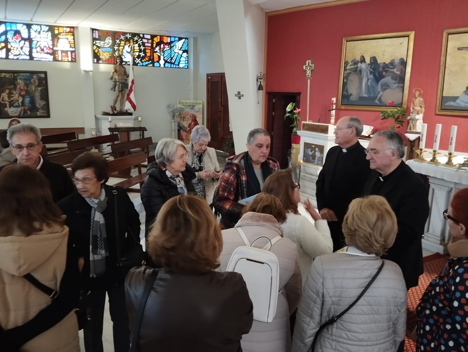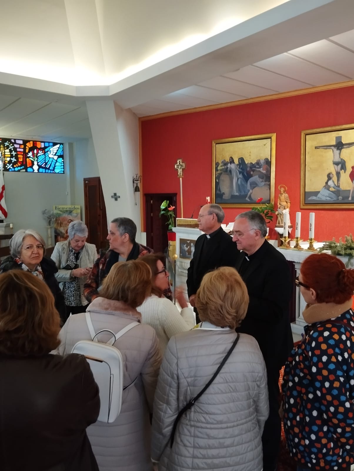 Terminada la visita al Centro Municipal de Acogida el Sr. Obispo, acompañado del párroco y diácono permanente, visitaron las instalaciones del Tanatorio El Centro dependiente su atención como capellanía de nuestra Parroquia. Después de saludar al personal se giró visita a las salas de velatorios, la capilla y las dependencias donde está ubicada la sacristía.