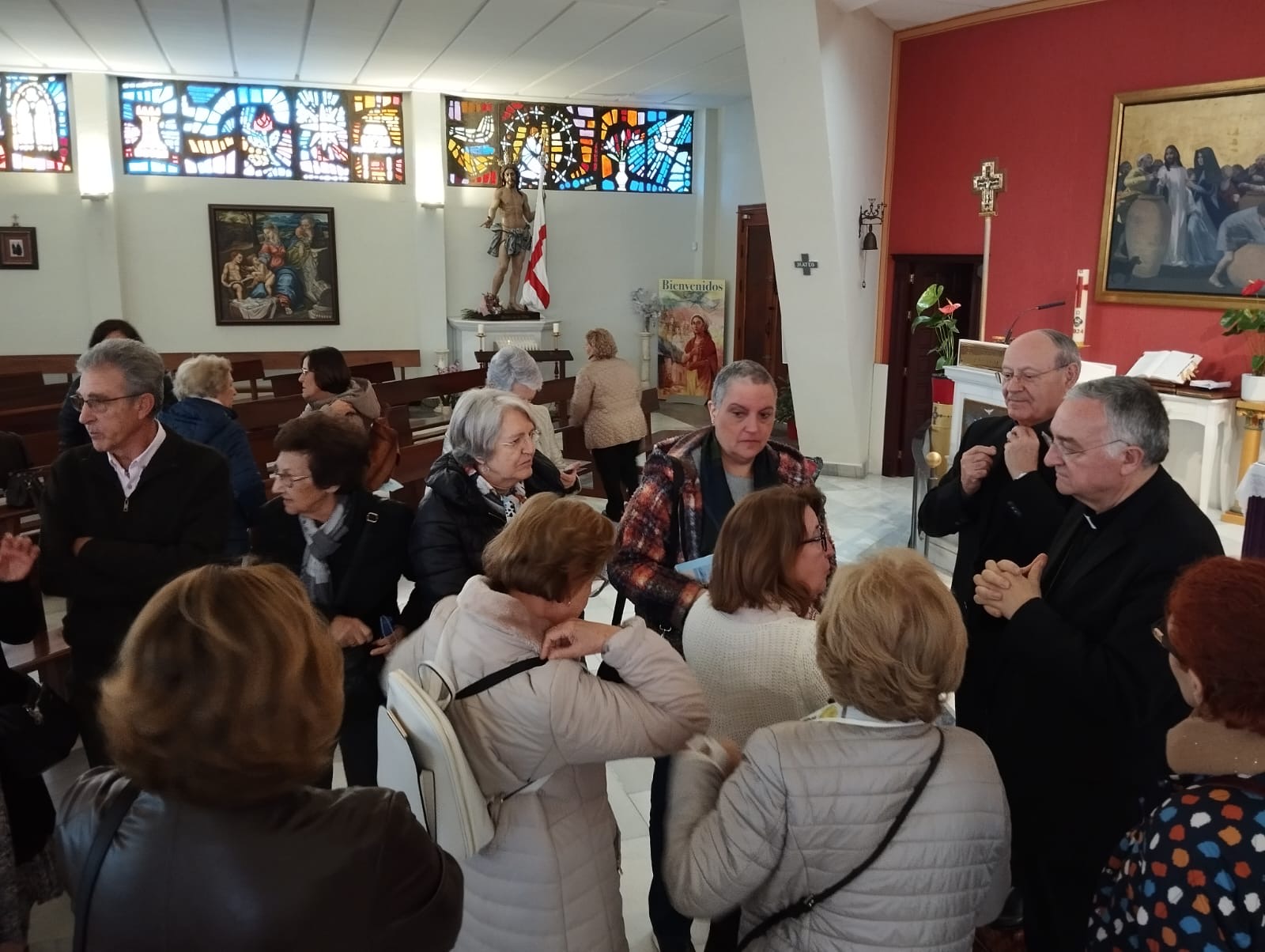 Con la Santa Misa se dio comienzo a los actos programados para la tarde. En la celebración el Sr. Obispo dispensó el sacramento de la Unción de los Enfermos a treinta y ocho feligreses que gozaron con la cercanía y las palabras del presidente de la celebración. Al finalizar la eucaristía, después de un rato de diálogo con todos los que se acercaron a saludar al Obispo, se celebró el encuentro general con los cristianos de la parroquia para dialogar sobre la puesta en marcha del plan pastoral diocesano propuesto para este curso pastoral en el que ocupó gran espacio la situación vocacional y la entrada en vigor de la nueva normativa sobre la Iniciación cristiana.